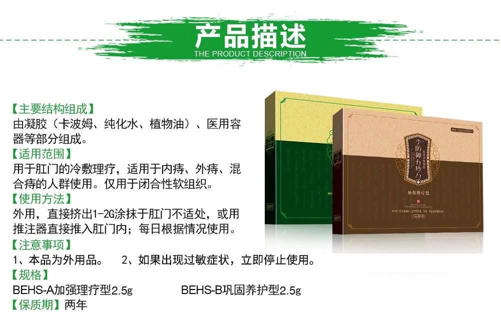 使用方法:将产品涂抹于肛门不适处,或用助推器直接推入肛门内,每日根据情况使用。用于肛门的冷敷理疗,适用于内痔、外痔、混合痔的辅助治疗。